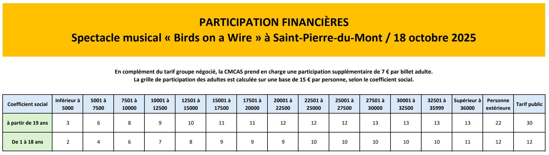 Dans le cadre de l’offre culturelle de la CMCAS de Bayonne, nous sommes en partenariat avec le Théâtre de Gascogne et nous vous proposons d’assister au spectacle musical « Birds on a Wire », qui se déroulera le samedi 18 octobre 2025 à 20h00 (RDV à 19h30). La représentation, d’une durée d’1h30, aura lieu dans l’un de leurs lieux de diffusion, Le Pôle, situé au 190 avenue Camille Claudel, 40280 Saint-Pierre-du-Mont.